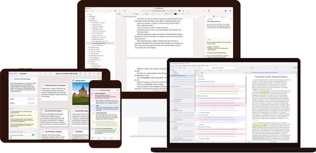 Scrivener for Mac | Scrivener for Windows | Scrivener for iOS and iPad